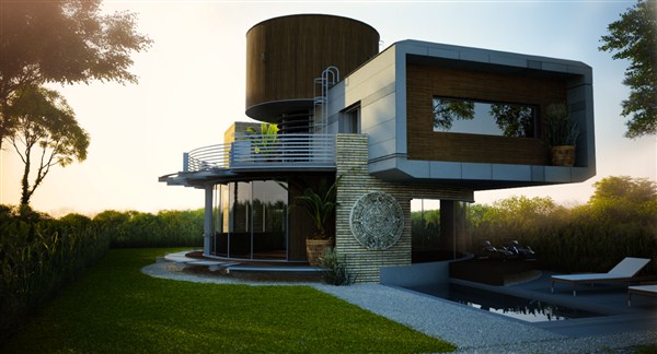 Proiectul de fata propune constructia unei locuinte moderne cu o volumetrie extrem de interesanta. La parter regasim un living cu dinning si bucatarie deschisa, toate spatiile fiind dispuse circular si beneficiind de lumina care patrunde prin largile suprafete vitrate care inconjoara casa. Cel de-al doilea nivel este dedicat unui dormitor matrimonial cu dressing si baie proprie, aici mai aflandu-se inca doua dormitoare. La ultimul nivel se afla un generos hobby-room.